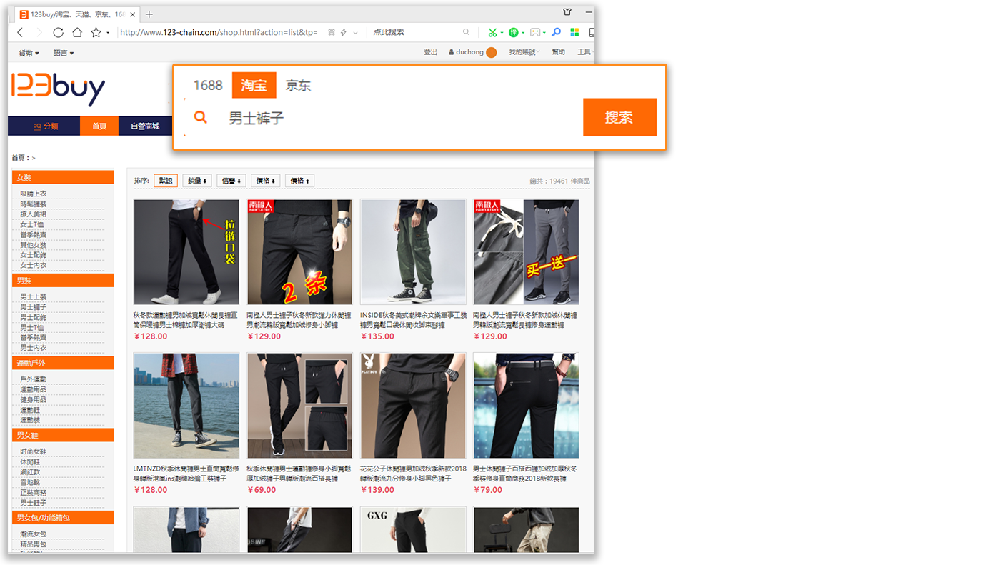 或者在jiyunmao平台搜索框中输入想要的商品名称,从推荐的淘宝、京东等检索后挑选商品