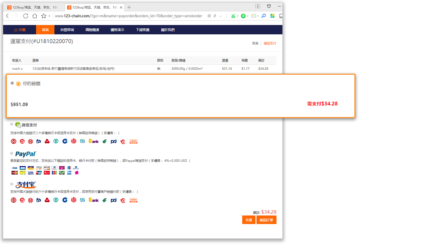 根据您实际的需求,填写国外收件人信息,选择您觉得合适的线路后支付订单运费。