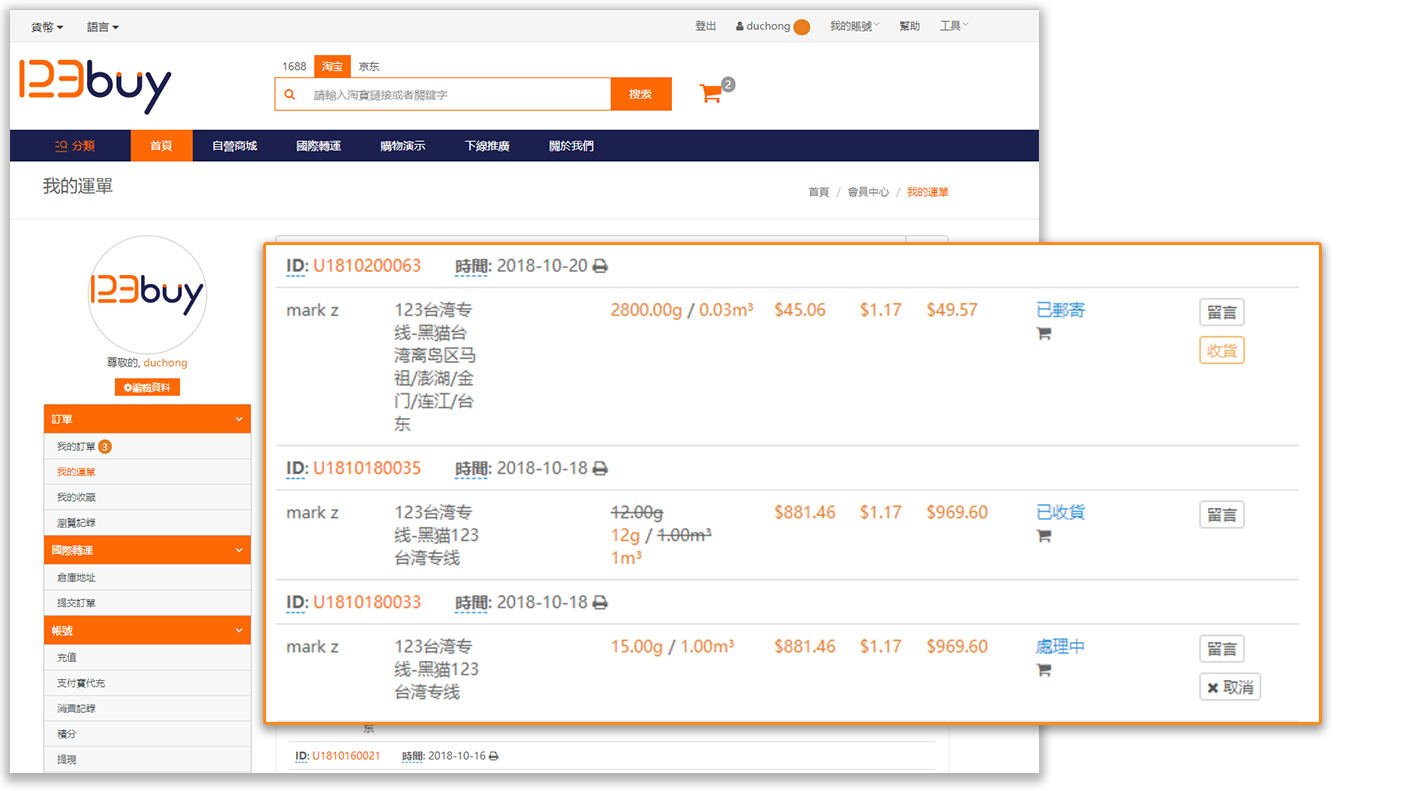 可以在会员中心我的运单中查询国际物流轨迹信息